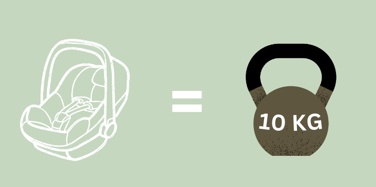 Tämä lapselle hauska leikki (ja joskus tarvittu rauhoittava hetki) on oikeasti minulle kahvakuulatreeni. Esikoinen + turvakaukalo on yhteensä ainakin 12 kg, ja kun sitä kieputtelee yleensä 15+ minuuttia yhtäjaksoisesti, kyllä siinä hien saa pintaan ja varsinkin käsivarret ja olkapäät zippiin.